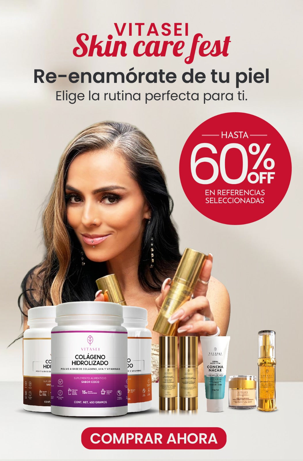 "El colágeno con resveratrol de vitasei se ha convertido en una parte esencial de mi rutina. ¡Me siento genial!"