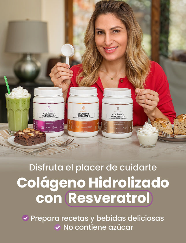"El colágeno con resveratrol de Vitasei, se ha convertido en una parte esencial de mi rutina. ¡Es tan completo! Me siento muy bien!"