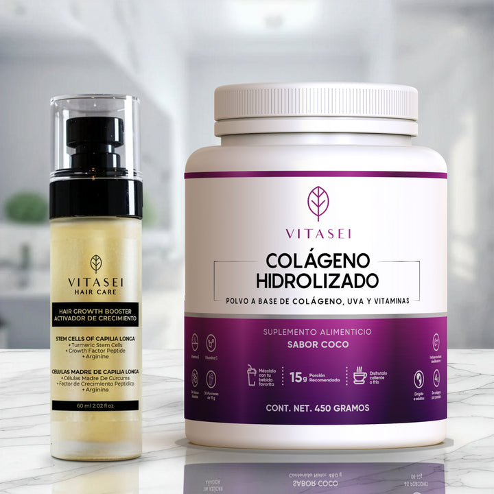 Este kit contiene productos: Activador capilar de células madre + Colágeno con sabor a coco
