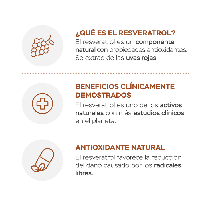 - Nuestra fórmula esta enriquecida con Resveratrol.