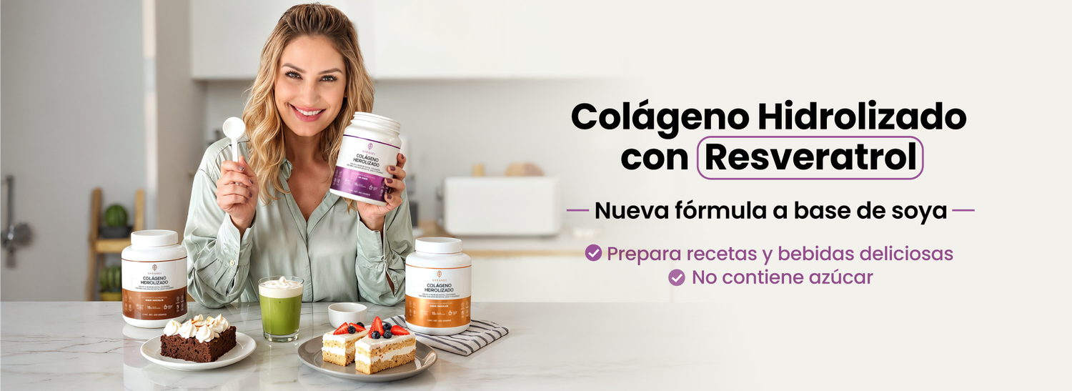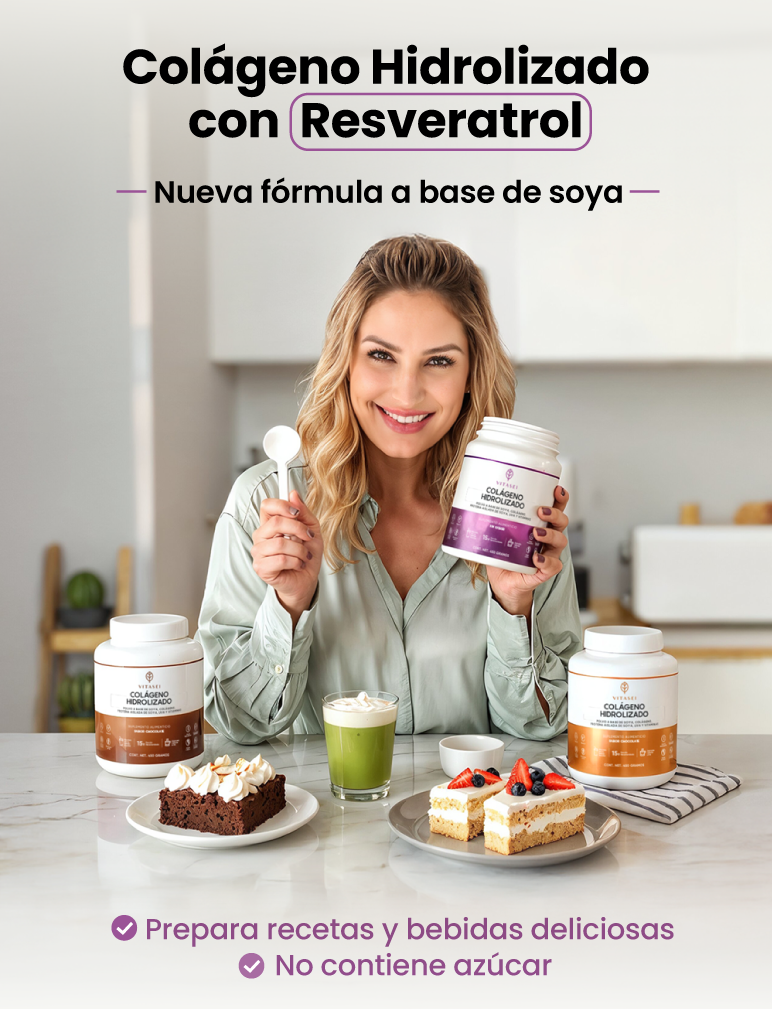 Colágeno Hidrolizado a base de soya enriquecido con Resveratrol, Vitamina C, Biotina, Vitamina A, Vitamina D, Vitamina B1, B6 Y B12.
