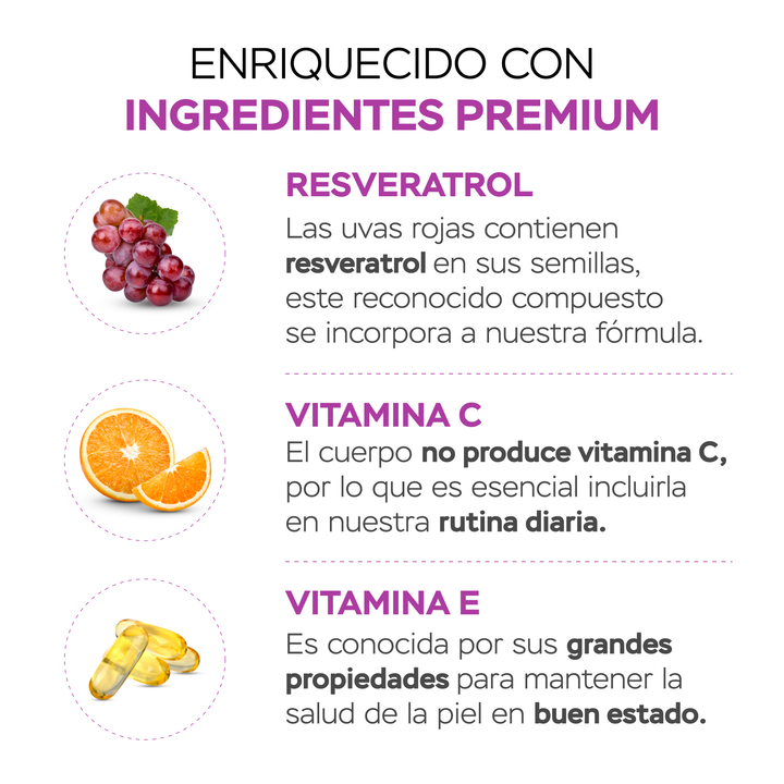 - Nuestra fórmula esta enriquecida con Resveratrol.