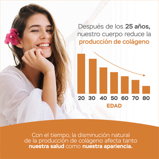 La piel se ve muy afectada con la pérdida de colágeno, debido a que este actúa como un "Pegamento" que la mantiene firme. El colágeno que produce nuestro cuerpo, nos ayuda a prevenir: