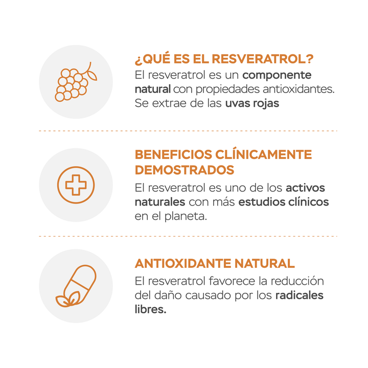 - Nuestra fórmula esta enriquecida con Resveratrol.