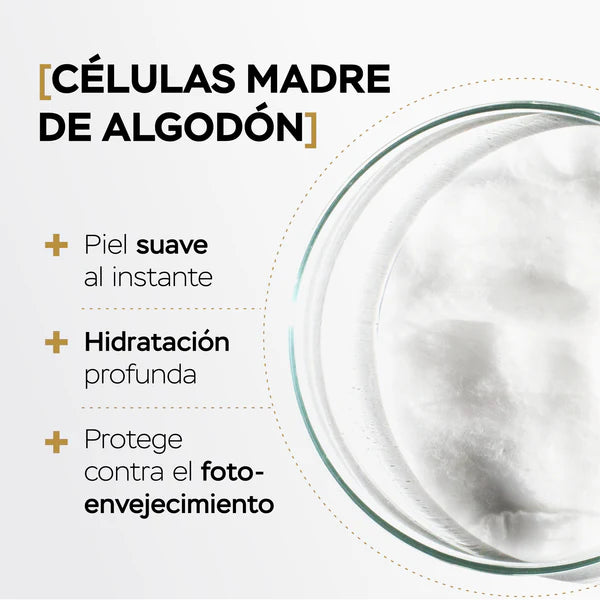 Las células madre de algodón, son un compuesto que además de nutrir la piel, ayuda a protegerla del foto envejecimiento causado por el sol.