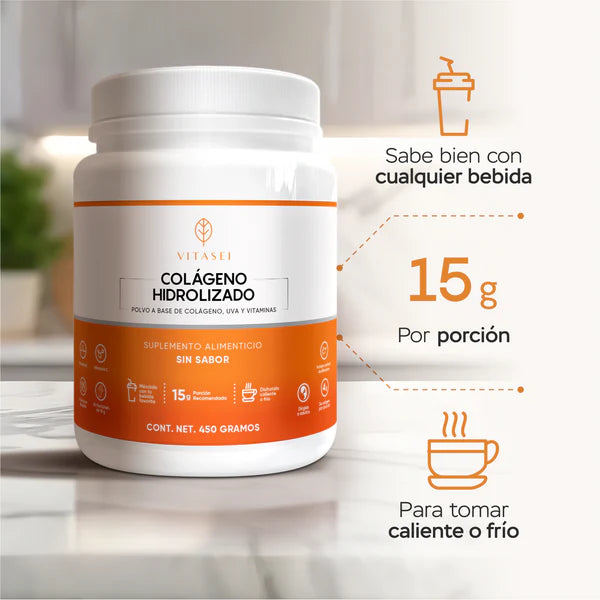 Toma 1 o 2 cucharadas de tu colágeno mezclada con tu bebida favorita (caliente o fría) en cualquier momento del día. También puedes dejar volar tu imaginación y lo puedes agregar a tus recetas preferidas.